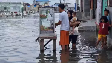 Medan, tvOnenews.com - Hari pertama bulan suci Ramadhan, fenomena alam atau disebut banjir rob merendam ratusan rumah warga di kawasan pesisir Belawan Kota Medan, Kamis (23/3/2023) sore. Selain menggangu aktivitas warga, juga berdampak kepada pedagang takjil yang sepi pembeli.