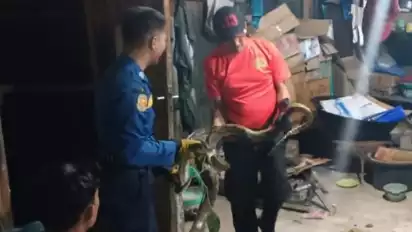 Ngagetin! Seekor Ular Piton Ditemukan di Plafon Rumah Warga Usai Sholat Terawih