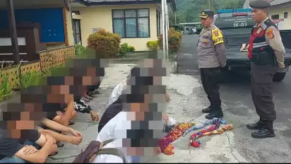 Lampung Barat, tvOnenews.com - Diduga akan melakukan perang sarung di wilayah sekitaran Kebun Raya Liwa, Kecamatan Balik Bukit, Kabupaten Lampung Barat, Selasa (28/03/2023), Sejumlah pelajar dibawa ke Polres Lampung Barat.