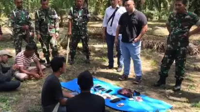 Tiba di lokasi perkebunan sawit petugas berhasil meringkus dan mengamankan empat orang pria yang diduga sebagai pengedar narkoba dan beberapa barang bukti seperti narkotika jenis sabu, alat hisap sabu dan uang tunai hasil penjualan barang haram tersebut.