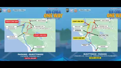 Bagaimana dengan pengendara yang memulai perjalanan dari jalur setelah Padang Lua Bukittinggi yang hendak menuju Padang atau sekitarnya, Hilman menjelaskan, bahwa di jam berlakunya satu arah nanti pengendara harus memutar arah melewati Singkarak Solok atau Tanah Datar, jika hendak menuju Padang.