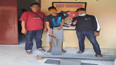"Ketika tiba di gedung Sky Cross tersebut, tim langsung melakukan penangkapan terhadap seorang laki-laki yang diduga sebagai pelaku pencurian dengan inisial SAN als SG (33) dan tim dapat mengamankan barang bukti berupa 1 batang besi baja leter U warna abu-abu dengan lebar 14 cm dan panjang 350 cm, 2 batang besi baja leter L warna abu-abu dengan lebar 14 cm dan Panjang 165 cm, 2 plat baja warna abu-abu lebar 20 cm dan panjang 95 cm, 14 buah skrup beserta baut berbahan besi, 2 buah batang besi bulat panjang 49 cm," jelas Kasi Humas Polres Binjai.