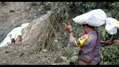 Tapanuli Selatan, tvOnenews.com - Akibat hujan yang melanda selama dua hari berturut-turut, kawasan Desa Sunge Sigiringgiring, Kecamatan SD Hole, Kabupaten Tapanuli Selatan (Tapsel), pada Sabtu (8/4/2023), terjadi longsor.