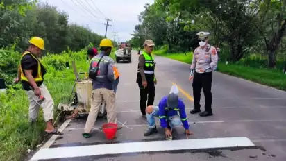 Rawan Kecelakaan, Ruas Jalan Sabak - Jambi Dipasang Pita Kejut