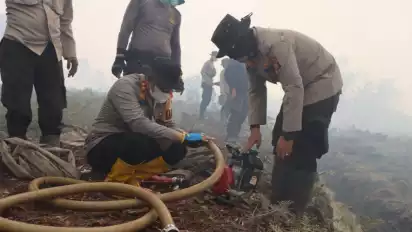 Dua Polres Berjibaku Padamkan Karhutla, 16 Unit Tim Gabungan Diterjunkan Meminimalisir Api Meluas