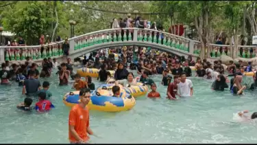 Langsa, tvOnenews.com - Pada lebaran ke tiga Idul Fitri 1444 H, pengunjung destinasi wisata memanfaatkan hari libur dengan memadati wisata kolam renang di Langsa, Aceh. Para pengunjung waterpark ini merupakan para pemudik yang ingin menghabiskan sisa liburan bersama keluarga.