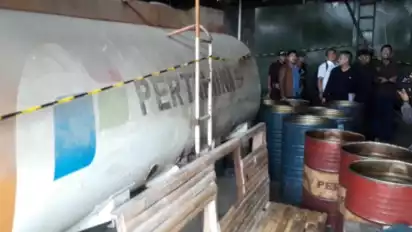 Selanjutnya penggeledahan diarahkan ke dalam gudang yang terdiri dari dua ruangan masing-masing berisi sejumlah tangki kapasitas ratusan ribuan liter dan sejumlah drum berkapasitas masing-masing 510 liter.