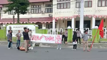 Puluhan mahasiswa yang tergabung dalam Solidaritas Mahasiswa Untuk Rakyat (SMUR) di Kabupaten Aceh Barat, menggelar aksi unjuk rasa di simpang pelor Meulaboh