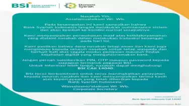 Terlepas dari semua itu, Bank Syariah Indonesia (BSI) memberikan klarifikasi dan permohonan maaf saat ini tengah melakukan maintenance sistem dan akan kembali ke kondisi normal secepatnya.