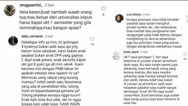 Sementara Camaba lainnya ngeluh. "UKT saya golongan 7, dan saya keterima di jurusan impian almarhum ayah saya, ibu saya single parent, jika saya mundur, saya merasa sangat kecewa," kata @keyta_saichi