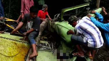 Tapanuli Selatan, tvOnenews.com - Diduga rem blong, truk tangki pengangkut crude palm oil (CPO) dari Sibolga menuju Padang Sidempuan terjun ke jurang sedalam 30 meter, tepatnya di jalan lintas Sumatera, Desa Parsalakan, Kecamatan Angkola Barat, Tapanuli Selatan (Tapsel), Sumatera Utara (Sumut), Kamis (11/5/2023). Akibatnya satu korban tewas dan dua korban mengalami luka-luka dan terpaksa harus dilarikan ke rumah sakit TNI AD Padang Sidempuan.