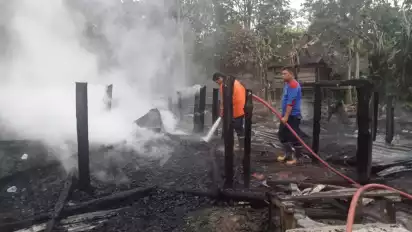 Dua rumah warga yang terbuat dari kayu ini, hangus tak tersisa. Tim pemadam kebakaran yang tiba dilokasi berhasil memadamkan api serta berhasil mengevakuasi penghuni rumah hingga tidak terjadi korban jiwa.