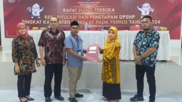 Langkat, tvOnenews.com - Komisi Pemilihan Umum (KPU) Kabupaten Langkat, menggelar rapat pleno terbuka rekapitulasi dan penetapan Daftar Pemilih Sementara Hasil Perbaikan (DPSHP) tingkat Kabupaten Langkat Pemilu tahun 2024 yang digelar di Gedung Pegnasos Stabat, Jumat (12/5/2023).