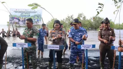 Polri Bersinergi Penanaman Mangrove Nasional di Dumai