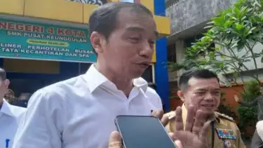 "Saya tadi pesan baju putih buatan siswa, saya lihat desain bajunya bagus-bagus," kata Joko Widodo (Jokowi) usia kunjungan ke SMK Negeri 4 Kota Jambi, Selasa (16/5/2023).