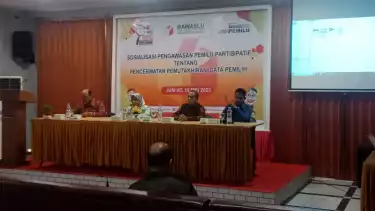 Langkat, tvOnenews.com - Badan pengawas pemilihan umum (Bawaslu) Kabupaten Langkat kembali laksanakan sosialisasi terkait pengawasan pemilu partisipasif tentang pencermatan pemutakhiran data pemilih yang dilaksanakan di salah satu hotel Stabat, Kabupaten Langkat, Jumat (19/5/2023).