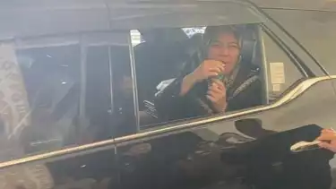 Sebelum menutup pintu mobilnya, Nunik berbicara namun tidak menjawab pertanyaan dari wartawan.