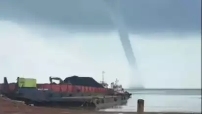Karimun, tvOnenews.com - Fenomena alam Waterspout atau belalai air berukuran jumbo terlihat di langit Kabupaten Karimun, Kepulauan Riau, Sabtu (27/5/2023) pagi.