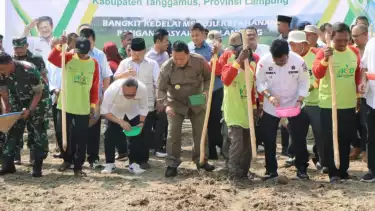 Tanggamus, tvOnenews.com - Untuk mengurangi ketergantungan impor kedelai dan meningkatkan produksi kedelai, Menteri Pertanian (Mentan) Syahrul Yasin Limpo (SYL) mendorong tanam kedelai di Pekon (Desa) Banjarmasin, Kecamatan Bulok, Kabupaten Tanggamus, Lampung, pada Jumat (2/6/2023).
