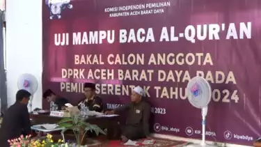Aceh Barat Daya, tvOnenews.com - Komisi Independen Pemilihan (KIP) Aceh Barat Daya telah memulai tes uji baca Al-Qur'an bagi 483 Bacaleg yang telah mendaftar di Komisi Independen Pemilihan setempat.