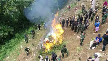"Total berat tanaman ganja yang berhasil dihancurkan diperkirakan mencapai 6 Ton dengan jarak kerapatan antar tanaman sekitar 50 cm," kata Kepala Koordinator Narkotika Direktorat Narkotika Deputi Bidang Pemberantasan BNN RI, Kombes Pol. Guntur Aryo Tejo, dalam video rilis resmi yang dibuat di lokasi, Rabu (7/6/2023).