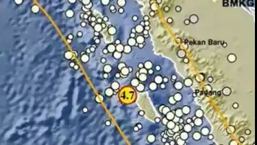 Gempa berkekuatan magnitudo (M) 4,7 terjadi di Kepulauan Mentawai, Sumatera Barat (Sumbar), Sabtu (10/6/2023). Gempa ada pada kedalaman 28 kilometer.