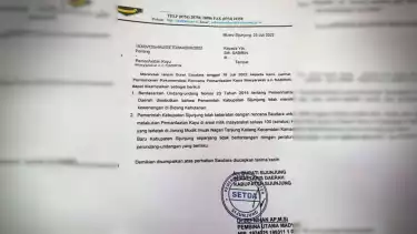 Surat yang diduga bodong tersebut dikeluarkan pada tanggal 25 Juli 2022 dengan nomor 193/0Vf20s4AU/SETDAKABVII/2022. Surat tersebut diduga dibuat oleh oknum yang tidak bertanggung jawab dengan maksud untuk menguasai area hutan di kawasan setempat.