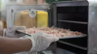 “Proses pembuatan kitosan dari kulit udang yaitu, kulit udang direbus dalam suhu 80-90 derajat Celsius, kemudian dengan campuran beberapa bahan seperti Hcl dengan konsentrasi 37%, NaOH 40 gram/L dan 60 ml HaOH. Kemudian dikeringkan menggunakan oven lalu digiling menjadi bubuk kitosan dan produk bubuk kitosan saat ini dijual kepada pengusaha pengopekan udang dan digunakan sebagai bahan pengawet alami makanan", ucapanya.