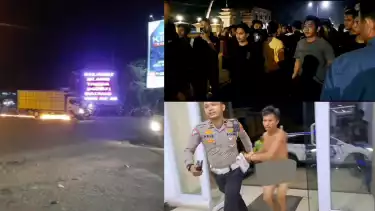 Truk tanpa muatan tersebut juga menyeret kendaraan roda 2 warga puluhan meter hingga mengeluarkan percikan api, yang terjadi di Kecamatan Muara Tembesi, Kabupaten Batanghari, Jambi, pada Senin (12/6/2023) malam sekira pukul 20.45 wib.