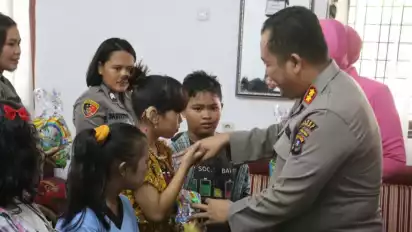 "Dalam rangka peringatan HUT Bhayangkara ke-77, kami menganggap anak-anak difabel sebagai fokus kami untuk berbagi dan memberikan semangat agar mereka terus belajar," ujar Kapolres Langkat.