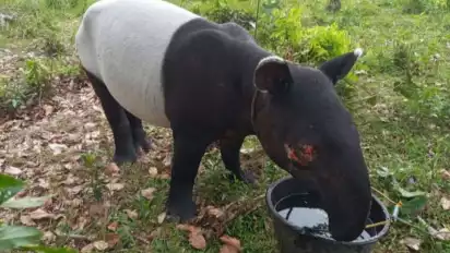 “Warga yang melihat tapir di dalam parit kemudian mengevakuasi ke daratan selain itu warga juga membersihkan badan tapir berwarna hitam putih tersebut kemudian memberi makan. Karena mereka sadar bahwa tapir adalah satwa yang dilindungi," katanya.