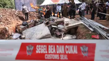 Tanjungpinang, tvOnenews.com - Kantor Pengawasan dan Pelayanan Bea dan Cukai (KPPBC) tipe madya Tanjungpinang memusnahkan berbagai barang ilegal, berupa ribuan batang rokok hingga ratusan liter minuman alkohol dan barang selundupan lainnya di Tempat Pembuangan Akhir (TPA) Ganet, pada Selasa (20/6/2023).