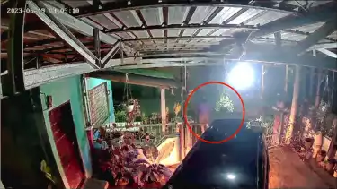 Dari video rekaman terlihat, seorang pria menggunakan sepeda motor mengenakan baju berwarna ungu bercelana pendek masuk ke arah mobil yang terparkir di depan teras rumah korban.