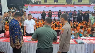Medan, tvOnenews.com - Polrestabes Medan dibantu Polda Sumut menangkap ratusan pelaku kejahatan jalanan yang meresahkan masyarakat dari berbagai lokasi di Kota Medan. Kapolrestabes Medan, Kombes Pol Valentino Alfa Tatareda, mengatakan para pelaku kejahatan jalanan itu ditangkap atas pengungkapan 97 kasus curas, curat dan curanmor selama satu bulan.