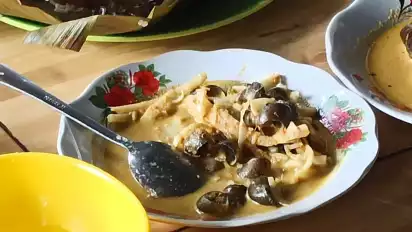 Bahan dasar gulai ini tentu saja liling padi, tutut atau keong gondang (pila ampullacea). Jenis siput air tawar ini kaya protein, asam amino esensial, mineral dan kalium yang sangat dibutuhkan tubuh. Dengan pengolahan yang tepat, tutut bisa menjadi sumber protein hewani yang bermutu dengan harga murah dibanding kambing, sapi ataupun ayam.