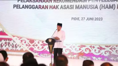 "Dengan mengucap bismillahirahmanirrahim, pada siang hari ini, secara resmi saya luncurkan program pelaksanaan rekomendasi penyelesaian non-yudisial pelanggaran HAM berat di Indonesia," kata Jokowi di Kabupaten Pidie, Aceh, Selasa (27/6/2023).