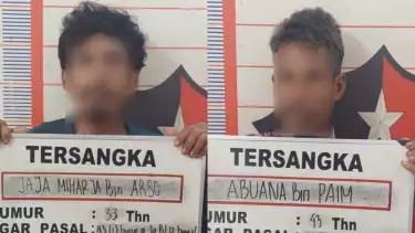 Keduanya bernama, Jaja Miharja (33) dan Abuana (43) warga asal Pangkalan Lampam Kabupaten Ogan Komering Ilir (OKI) Sumatra Selatan. Kedua warga pembalak liar ini ditangkap Aparat Kepolisian Unit Reskrim Polsek Bayung Lencir, Kamis (29/7/2023).