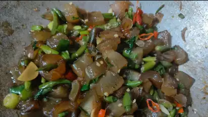 Musi Banyuasin, tvOnenews.com - Bosan dengan masakan daging yang itu-itu saja, di Kabupaten Musi Banyuasin, Sunatra Sekatan ada masakan olahan kulit Kambing atau Kikil Kambing yang rasanya bikin ketagihan, namanya oseng kikil kambing, bahkan menu masakan ini cukup terkenal di Sunatra Selatan dan menjadi menu masakan terfavorit.