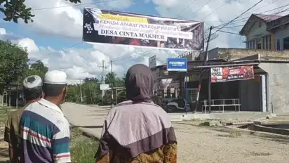 Ada beberapa tempat Spanduk membentang yang dipasang warga di atas badan jalan di Desa tersebut  seperti di simpang Proyek, Simpang Pekan dan Simpang Rintis dengan tulisan "Tolong...Kepada Aparat Penegak Hukum Peredaran Narkoba Sangat Meresahkan Warga Cinta Makmur".
