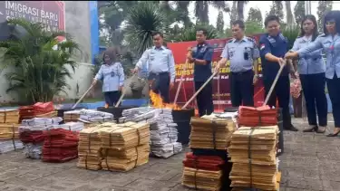 Medan, tvOnenews.com - Kantor Imigrasi Kelas II TPI Belawan memusnahkan sebanyak 52 ribu arsip substantif keimigrasian dari tahun 2013 hingga 2019 dengan cara dibakar. Pemusnahan dilakukan sesuai dengan ketentuan dengan tujuan dapat menyelamatkan data permohonan paspor.