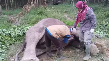 Pekanbaru, tvOnenews.com - Seekor Gajah Sumatera ditemukan mati di wilayah Tesso Tenggara pada 11 Juli 2023, di Kabupaten Pelalawan Provinsi Riau. Gajah berjenis kelamin jantan usia 10 tahun itu diduga mati akibat diracun.
