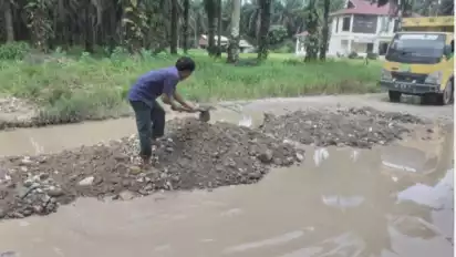 Penimbunan yang di lakukan oleh Darwin Simatupang dan masyarakat ini merupakan bentuk keprihatinannya sebagai mantan camat melihat kondisi jalan yang sudah sangat parah.