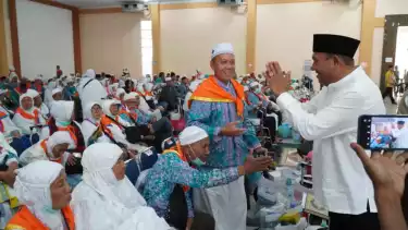"Tidak banyak yang saya sampaikan di kesempatan, karena saya sadar bahwa Bapak Ibu telah cukup rindu dengan sanak saudara, keluarga, kerabat dan jiran tetangga, sehingga bergegas untuk segera bertemu. Kami berbesar hati dan penuh harapan Insya Allah titel Haji Mabrur yang melekat seiring keberadaan Bapak Ibu di tengah-tengah masyarakat nantinya mampu dijaga dan dirawat dengan sebaik-baiknya.
