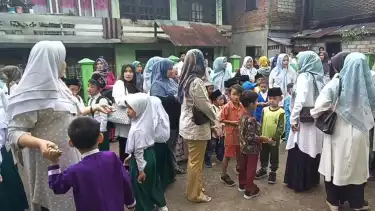 Pada Senin (17/07/2023) pagi. Orang tua siswa yang kebanyakan ibu-ibu terlihat bergerombol menunggu anak mereka di depan ruang kelas.
