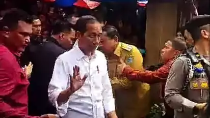 Bengkulu Utara, tvOnenews.com - Kejadian menghebohkan saat kunjungan Presiden Joko Widodo di Pasar Purwodadi, Kabupaten Bengkulu Utara, Provinsi Bengkulu pada Jumat (21/7/2023) terekam video dan beredar di jejaring media sosial.