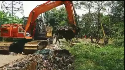 Pihak pemerintah Camar Patumbak pun mengerahkan satu unit excavator untuk membersihkan lokasi pembuangan sampah illegal ini.