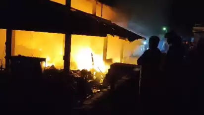 Dairi, tvOnenews.com - Peristiwa kebakaran di Blok D3, di pusat pasar Sidikalang, Kabupaten Dairi Sumatera Utara, mengakibatkan puluhan kios pedagang ludes terbakar Jumat (28/07/2023). Sedikitnya, 35 kios pedagang ludes dilahap sijago merah, 7 kios terpaksa dirusak mencegah api meluas.