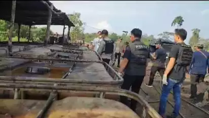 Polisi Grebek Gudang Penyulingan Minyak Ilegal di Musi Banyuasin