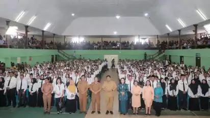 Dairi, tvOnenews.com - Sebanyak 514 orang Pegawai Pemerintah dengan Perjanjian Kerja (P3K) guru formasi Tahun 2022 memperoleh SK yang diserahkan langsung Bupati Dairi Eddy Keleng Ate Berutu, pada Senin (31/07/2023), di Gedung Olah Raga (GOR) Kecamatan Sidikalang, Kabupaten Dairi, Sumatera Utara.