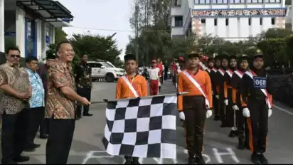 Dalam Rangka Hari Jadi Republik Indonesia ke-78, Pemkab Tanah Karo Lepas 41 Regu Gerak Jalan Tingkat SD-SMP